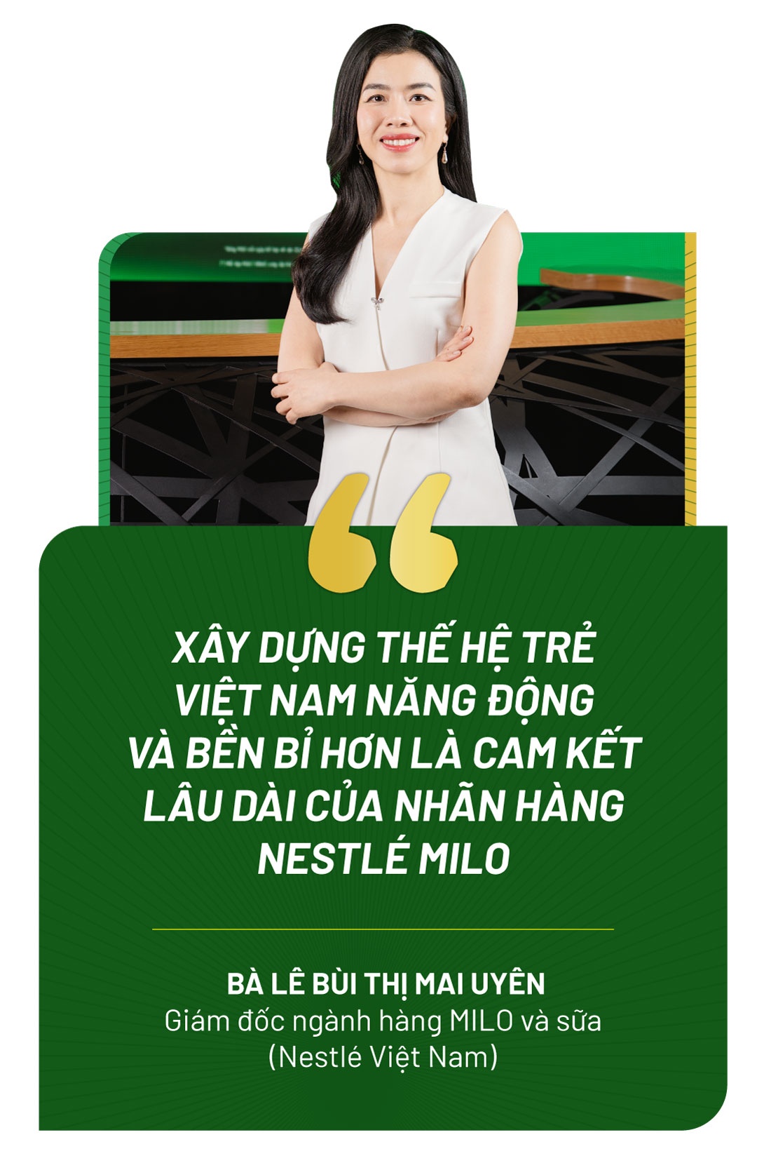 Bà Lê Bùi Thị Mai Uyên - Giám đốc ngành hàng MILO và sữa (Nestlé Việt Nam) - cho biết trong hành trình cùng con khôn lớn, các phụ huynh có nhiều mối quan tâm. Một trong những mong muốn của cha mẹ là con có đủ sự bền bỉ để phát triển toàn diện và thành công trong tương lai.