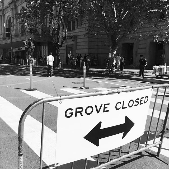 | Con đường bao quanh tòa nhà tạm ngưng lưu thông để phục vụ cho những công tác chuẩn bị cuối cùng. |
