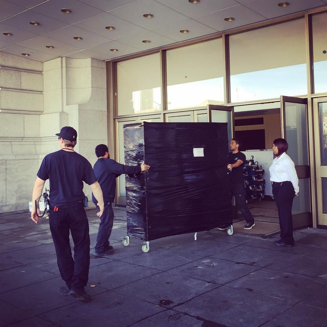 | Nhân viên của Apple đẩy các kiện hàng bí mật vào bên trong. |