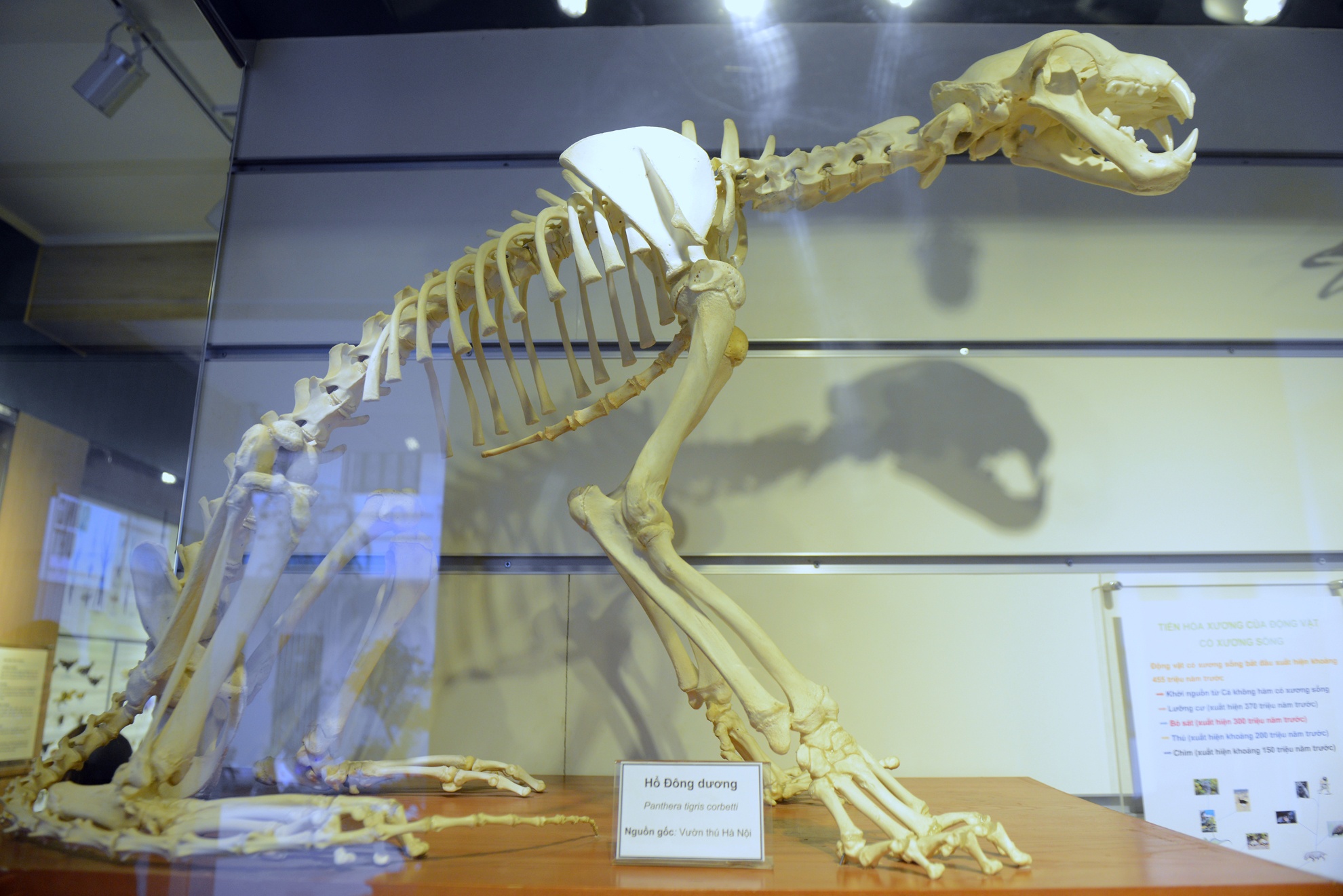 | Động vật có xương sống đã bắt đầu tiến hoá vào khoảng 530 triệu năm trước. Trong hình là bộ xương hổ Đông Dương được thu nhận tại Vườn thú Hà Nội. |