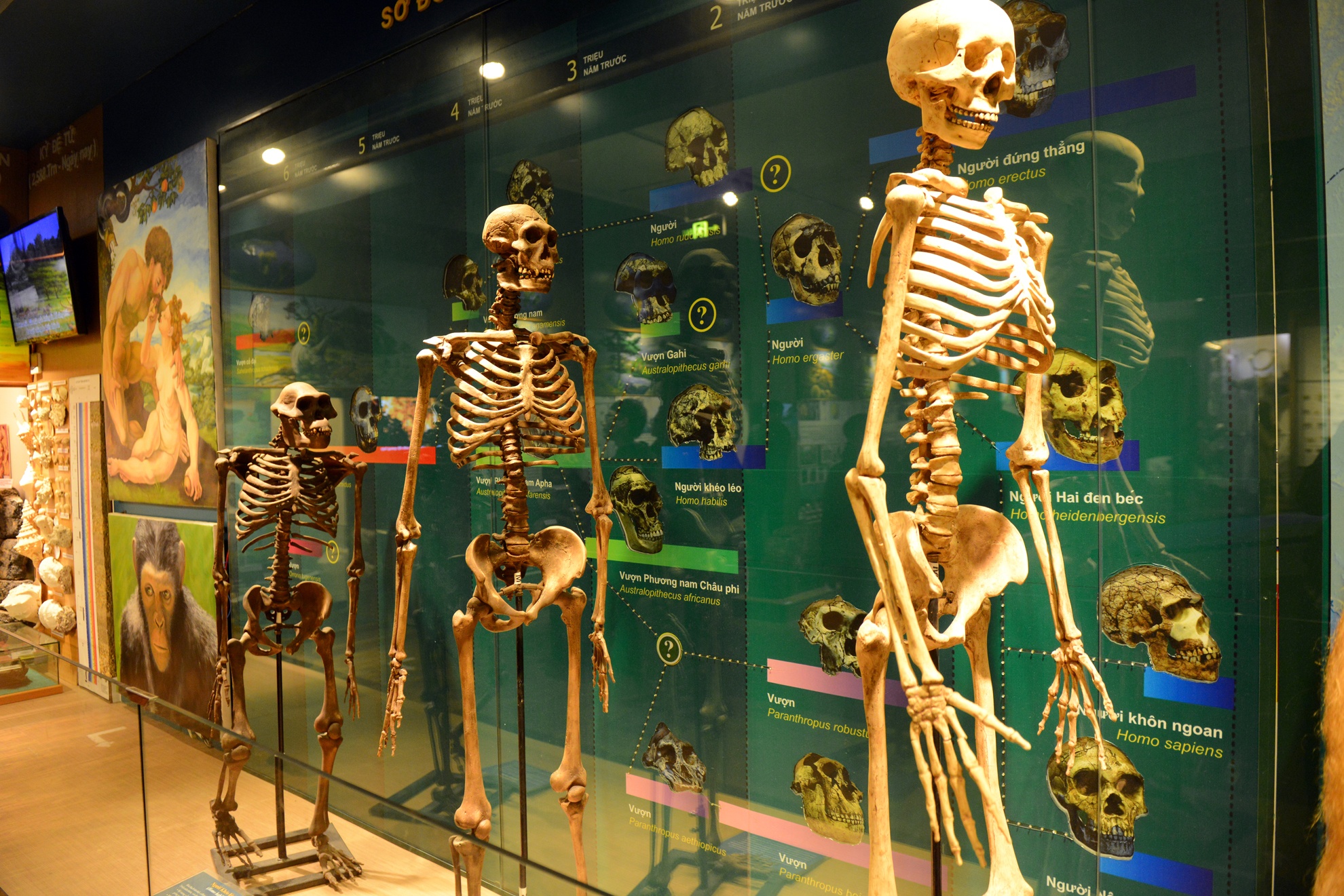 | Quá trình tiến hoá loài người được hình thành từ những dạng linh trưởng, hình người đầu tiên rồi tiến hoá lên những chủng người khác nhau và cuối cùng là người hiện đại hiện nay. Trong hình là mẫu vật Người khéo léo, Người đứng thẳng và Người khôn ngoan. |