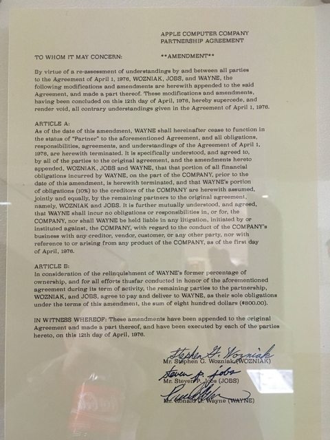 Bản hợp đồng của Apple với các đối tác những năm 70 của thế kỷ trước. |