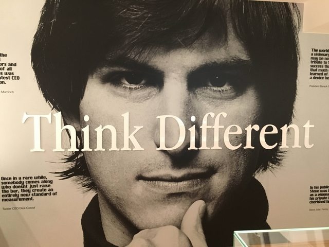 Hình ảnh Steve Jobs thời trẻ cùng châm ngôn "Think Different". |