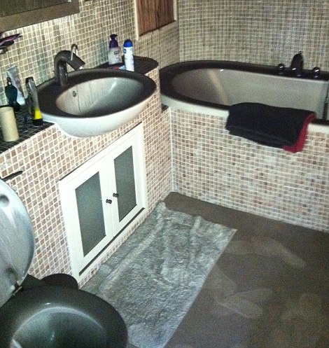 | Khu vệ sinh cũng bị bao phủ bởi lớp tro bụi dày đặc. |