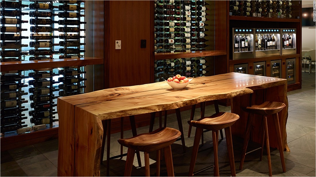 | Không cần phải đến Thung lũng Napa để thử rượu, những người có nhu cầu có thể tận hưởng tại phòng chờ Centurion - nơi có hẳn một góc chuyên dành cho đồ uống này. 18 loại rượu từ các nhà máy rượu vang khác nhau của California, được lựa chọn bởi giám đốc rượu Anthony Giglio sẽ trưng bày ở đây. |