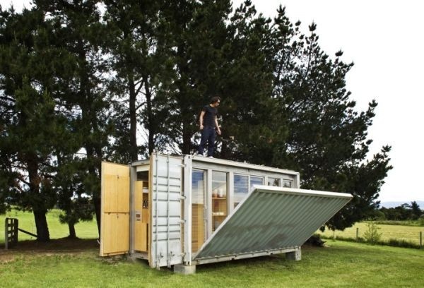 Không những vậy thiết kế nhà này còn có khoảng sân gỗ rất rộng được "biến hóa" nhanh chóng với thao tác hạ một bên cánh của container xuống.