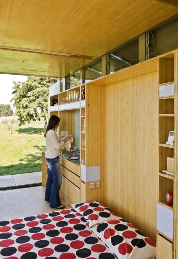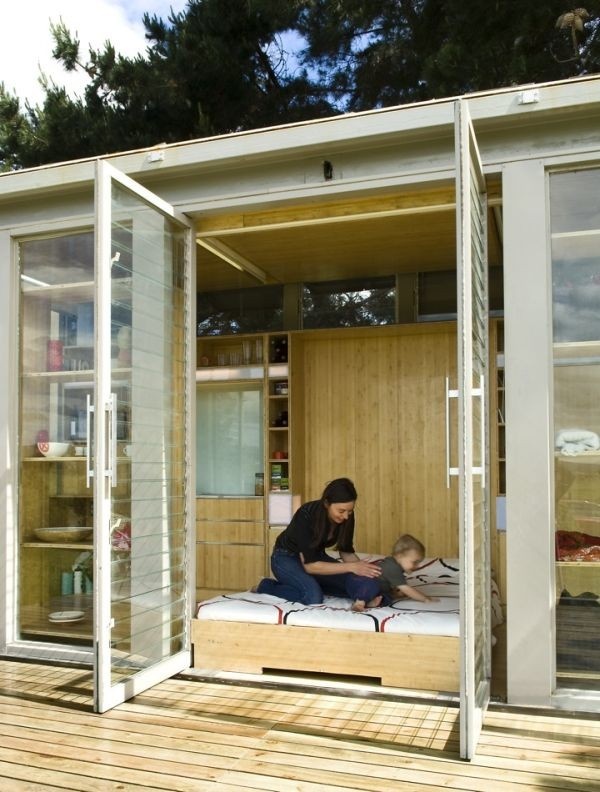 Ngoài các không gian chức năng cơ bản bên trong, bạn còn có thể tạo nhanh chóng thêm không gian nghỉ ngơi thư giãn ngoài trời bằng việc lắp những tấm ván vào khớp mấu có sẵn ở cửa. Đây sẽ là nơi đọc sách hoặc phơi nắng rất thú vị.