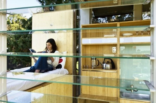 Ngôi nhà được thiết kế trong lòng container nên không chỉ nhỏ gọn, cơ động mà còn rất bền chắc với phần vỏ làm bằng thép hợp kim. Các không gian bên trong khá đầy đủ bao gồm một nhà bếp nhỏ, phòng tắm, giường ngủ với các món nội thất đa năng làm từ gỗ. Để tạo nên sự thoáng đãng mà vẫn đảm bảo được sinh hoạt, vách ngăn giữa các phòng được làm bằng kính cường lực có thể xếp gọn dễ dàng nhờ các thanh trượt.
