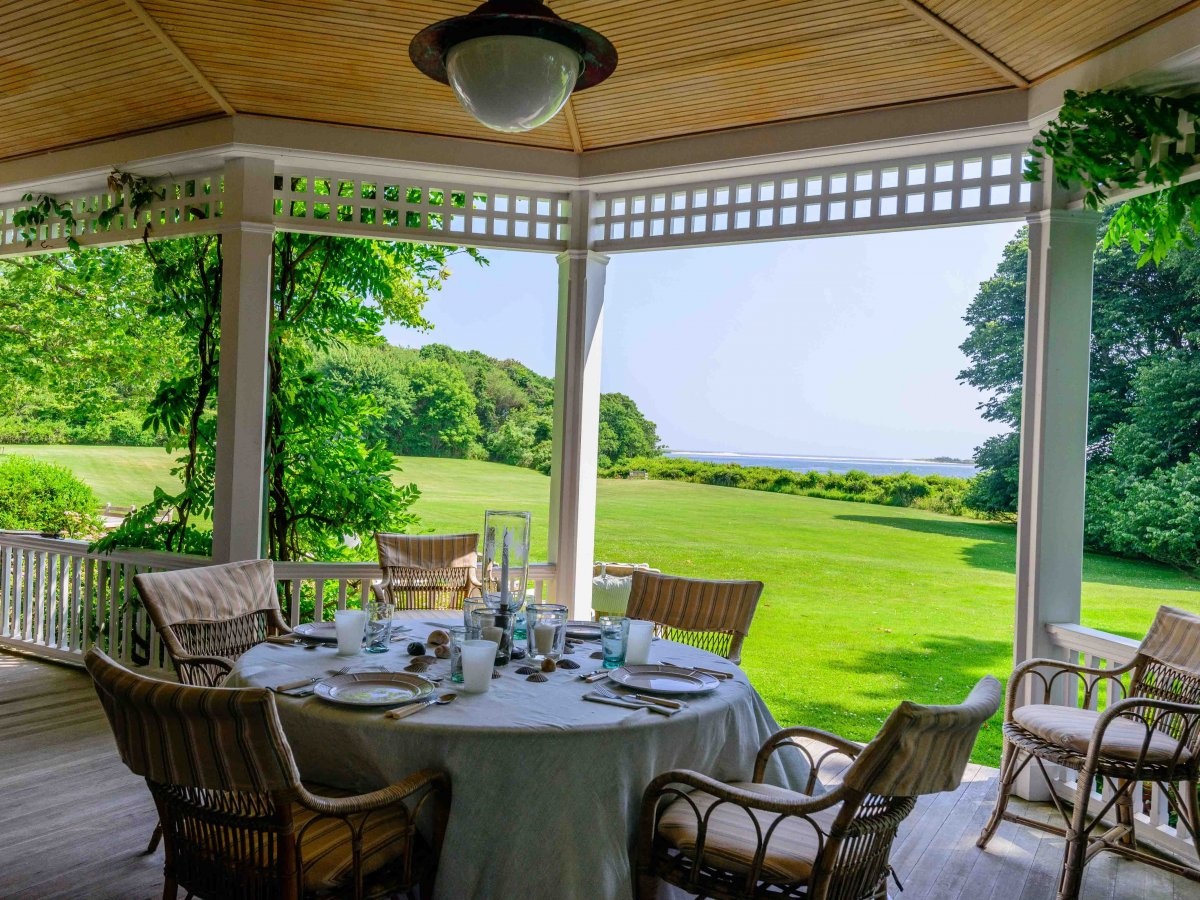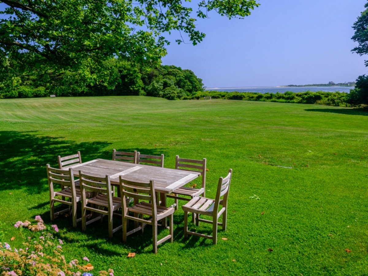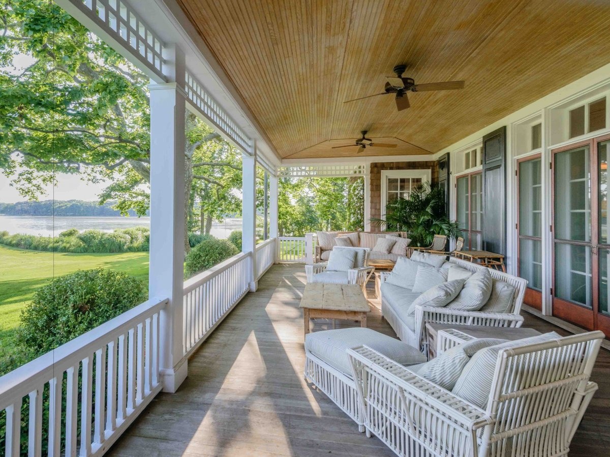 | Các hiên nhà rộng ở tầng trệt được bao quanh bởi không gian xanh cùng dòng chảy êm đềm của hồ Georgica. |