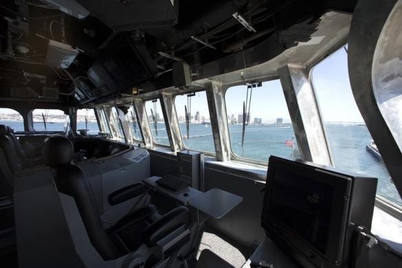 Khung cảnh nhìn từ khoang lái chiếc USS Coronado. Hôm 3/4/2014, giới chức Hải quân Mỹ tổ chức cho các phương tiện truyền thông tham quan con tàu. |