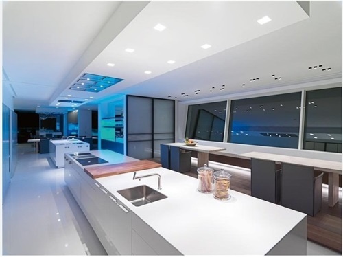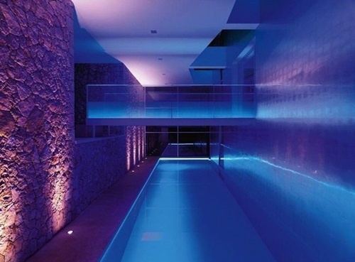 | Một bể bơi trong nhà được trang bị hệ thống đèn led đổi màu tuyệt đẹp. |