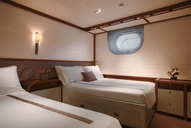 | Một trong 5 phòng dành cho khách trên du thuyền này. |