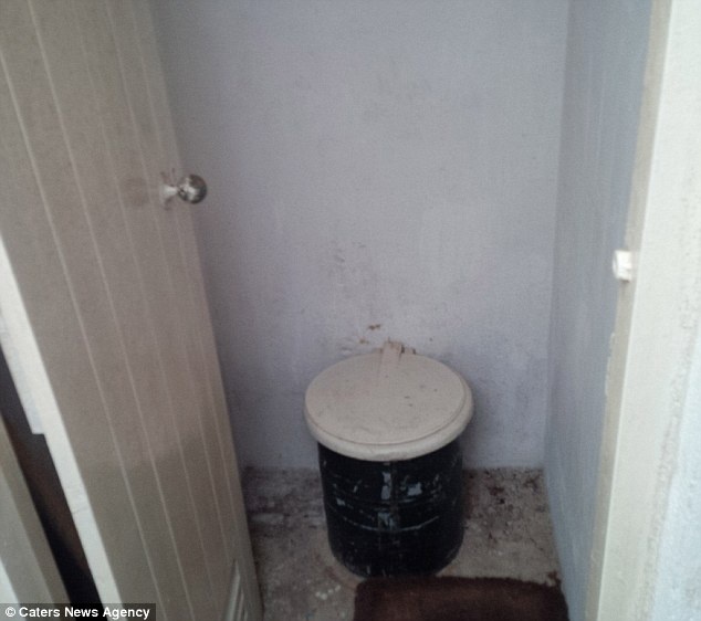 | Phòng tắm chật hẹp trong nơi trú ẩn bí mật. Căn hầm cũng có một nhà vệ sinh. |