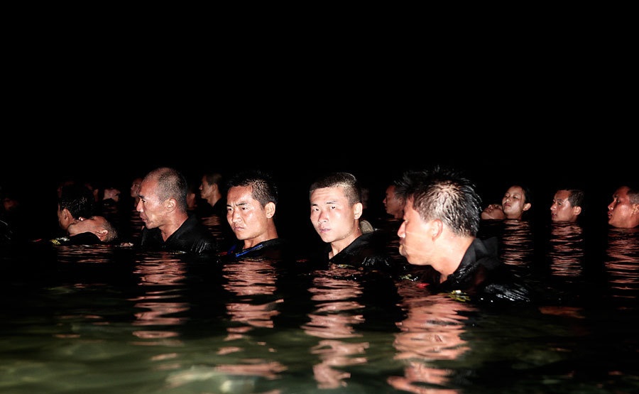 | Bài tập dưới nước của các học viên trong khóa huấn luyện. Ảnh: news.cn.