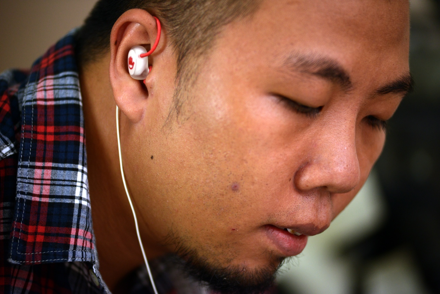 | Trần Mạnh Hùng kiểm tra chất lượng âm thanh một tai nghe vừa hoàn thiện. Anh cho biết, sẽ thuê nhà xưởng và nhân công để sản xuất quy mô lớn trong thời gian tới. |