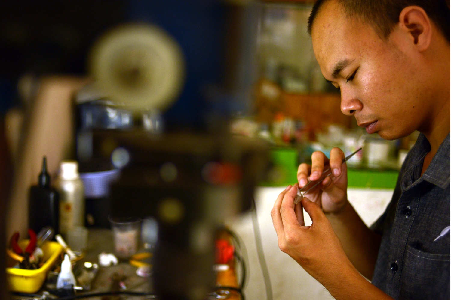 | Tại xưởng chế tác, mọi công đoạn của họ đều đòi hỏi sự tập trung cao độ. |