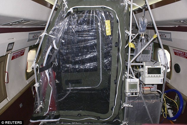 | Máy bay cứu thương Gulfstream có vẻ ngoài khá giống những chuyên cơ sang trọng mà những người nổi tiếng và quyền lực thường sử dụng. Tuy nhiên, nó chuyên phục vụ việc chở bệnh nhân Ebola về tới Mỹ. Ảnh: Reuters |