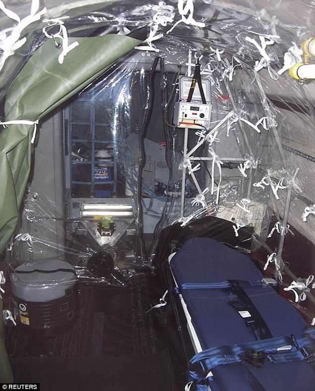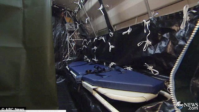 | Một khu vực sảnh nhỏ cạnh cabin là nơi các bác sĩ và nhân viên y tế mặc trang phục bảo hộ trước khi bước vào phòng cách ly để chữa trị cho người bệnh. Ảnh: ABC News |