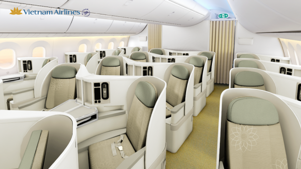 | Khoang thương gia máy bay Boeing 787-9 của Vietnam Airlines.Ảnh: Vietnamairlines. |