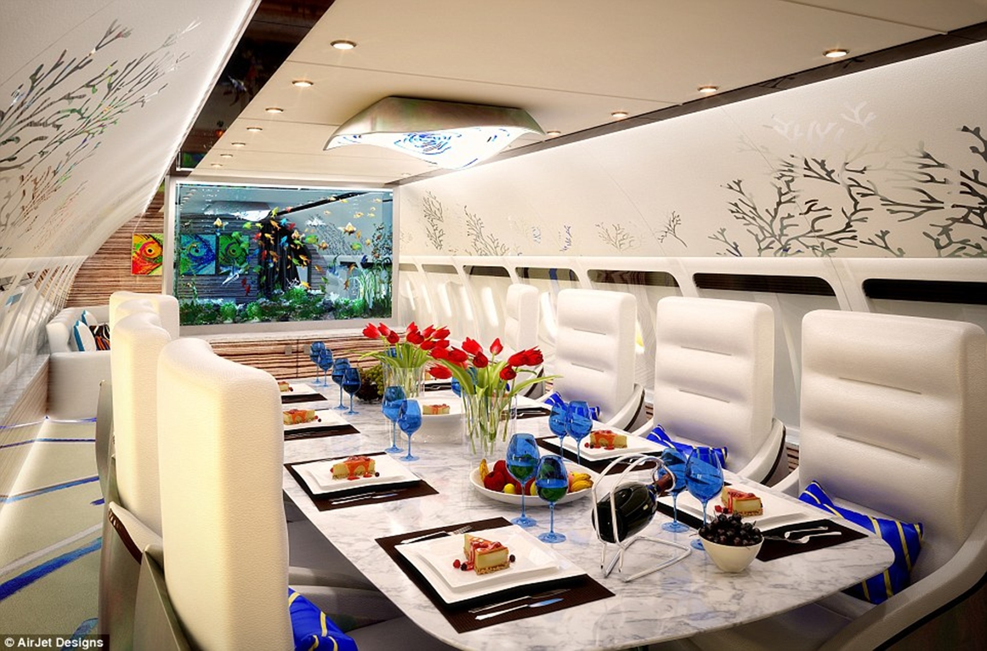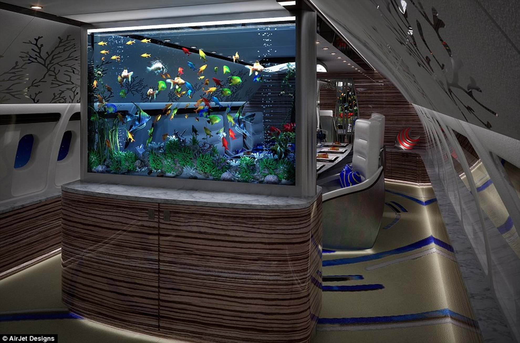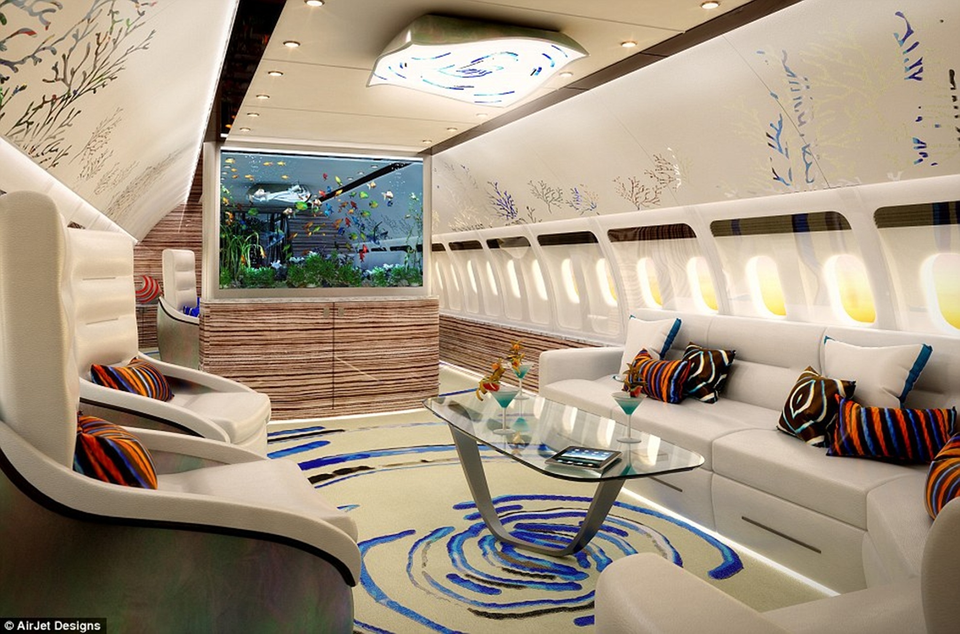 Những chiếc máy bay riêng của tỷ phú Abramovich hay hoàng thân Ả-rập được thiết kế thêm sòng bạc, phòng tắm đá cẩm thạch mạ vàng, bể cá... với chi phí lên tới 90 triệu USD.