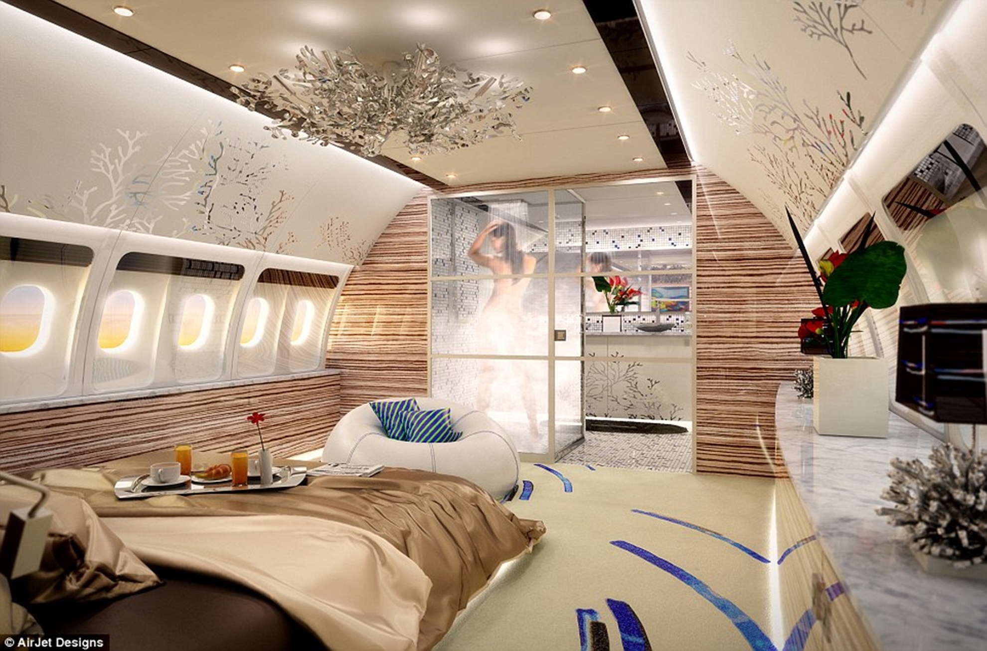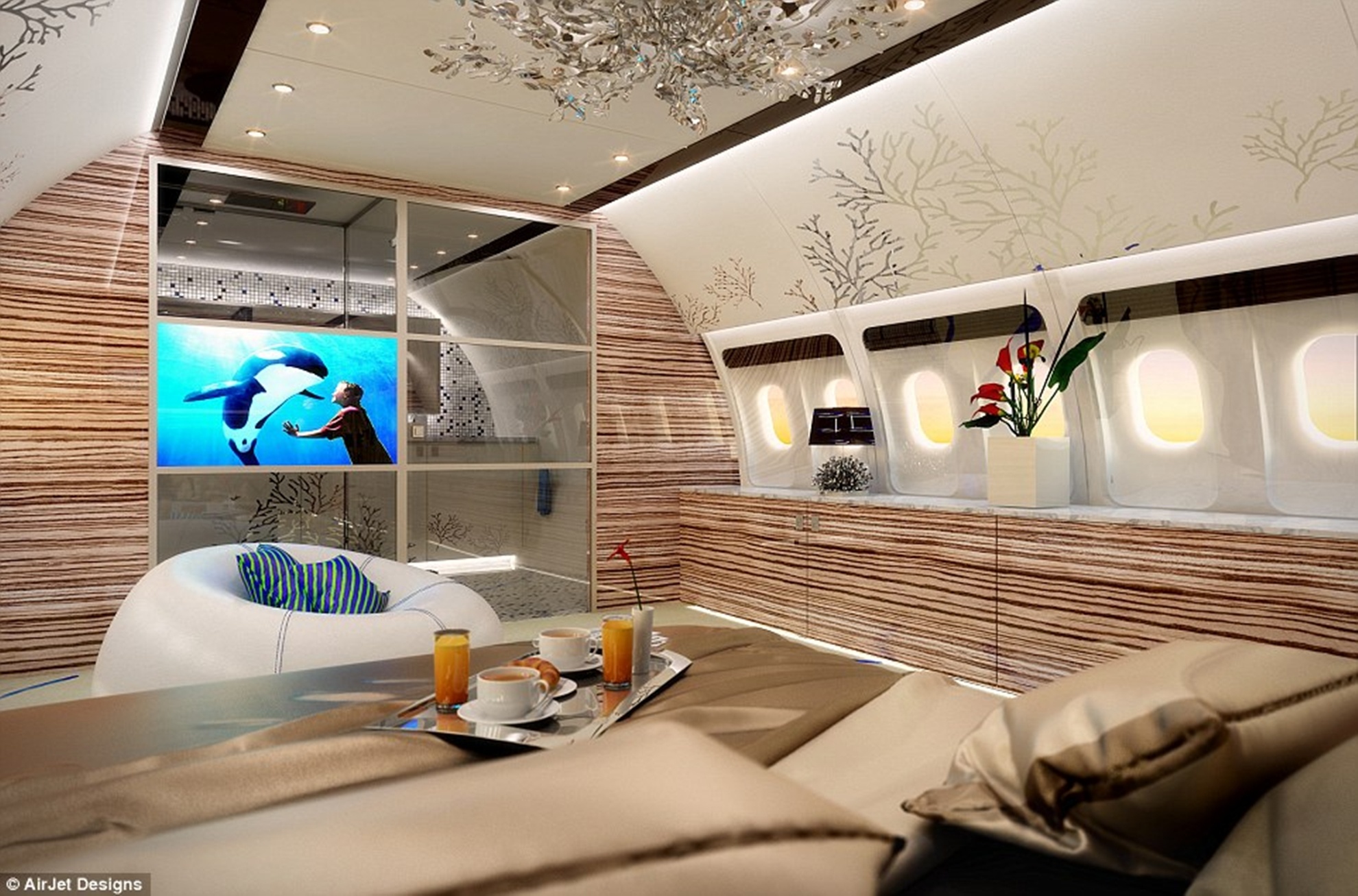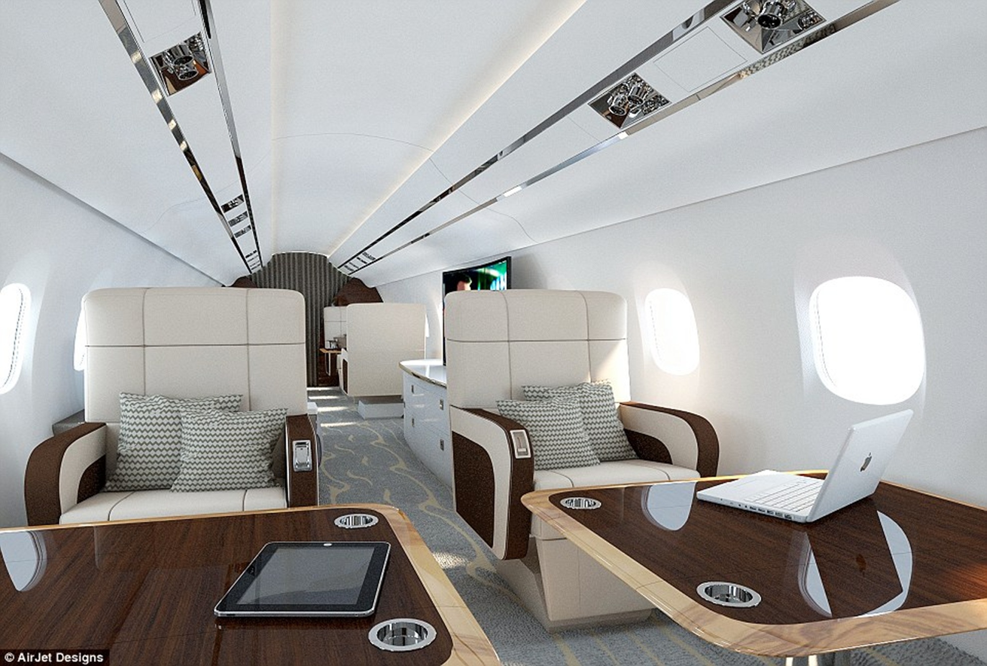 Những chiếc máy bay riêng của tỷ phú Abramovich hay hoàng thân Ả-rập được thiết kế thêm sòng bạc, phòng tắm đá cẩm thạch mạ vàng, bể cá... với chi phí lên tới 90 triệu USD.