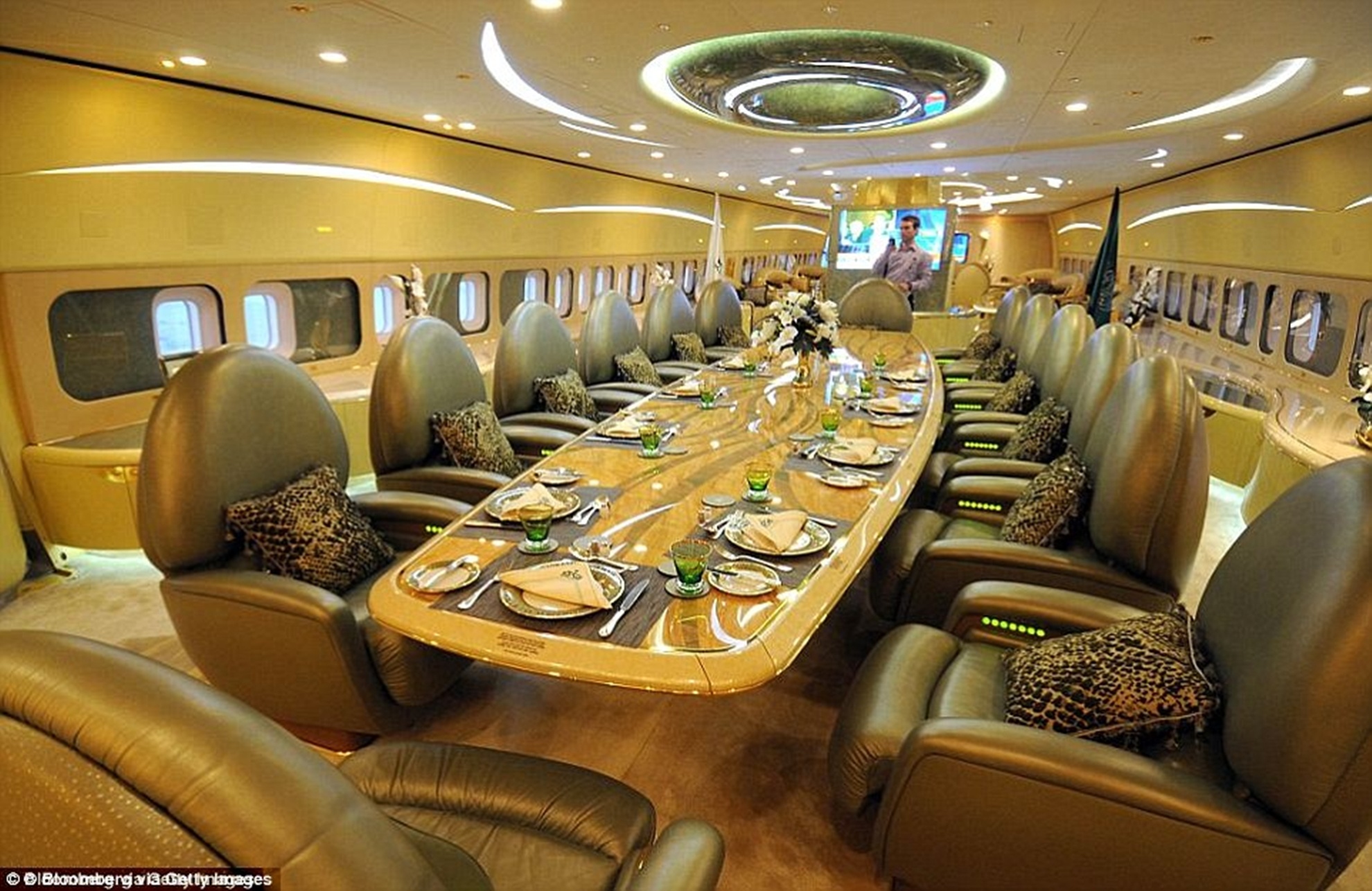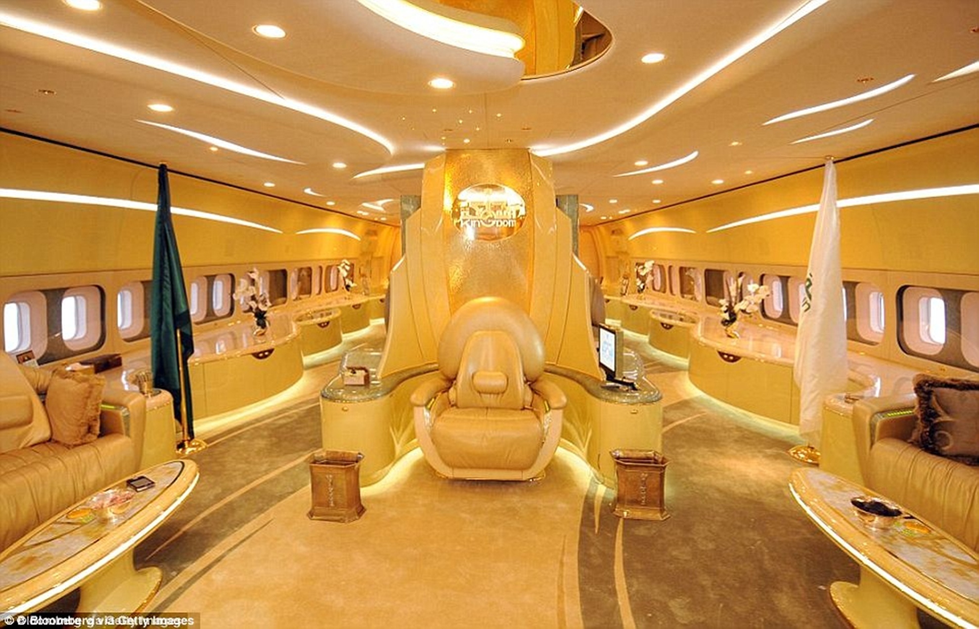 | Hoàng thân Alwaleed bin Talal al-Saud thậm chí còn đặt làm một chiếc ghế mạ vàng cho riêng mình ở giữa máy bay. |