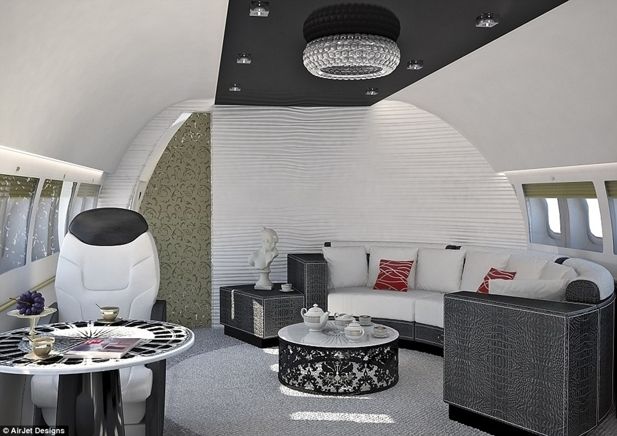 | Một thiết kế với tông màu đen trắng sang trọng khác của chuyên cơ riêng. |