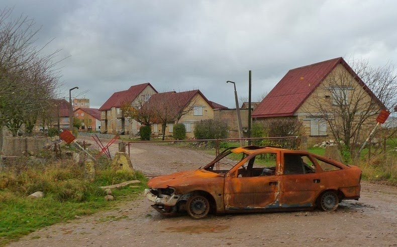 | Trong những năm gần đây, Anh mở rộng phạm vi ngôi làng đến thị trấn Shanty nhằm đáp ứng nhu cầu tập luyện của lực lượng quân đội sẽ tham gia chiến trường ở Afghanistan và Iraq. Khu mở rộng bao gồm các thùng hàng xếp chồng hai bên đường. |