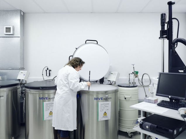 Để làm việc trong khu vực lưu trữ máu, các bác sĩ phải mặc đồ bảo hộ chuyên dụng. |