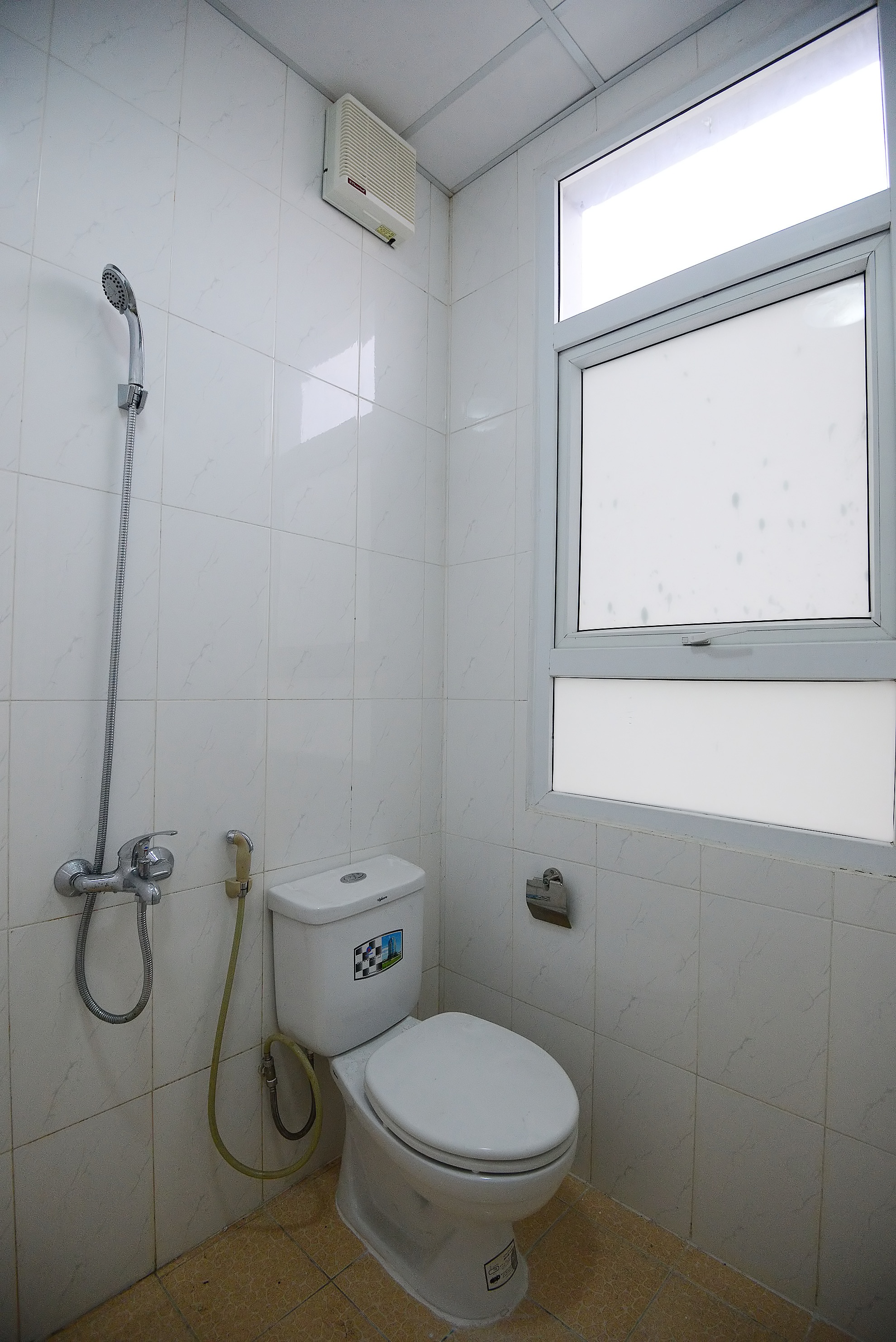Khu vệ sinh cho phòng nhỏ 45m2 (6 người) gồm 2 phòng tắm - vệ sinh ngăn rời. |