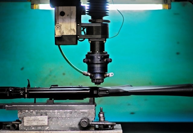 Hệ thống băng chuyền đưa những khẩu súng qua từng khu vực khác nhau trong nhà máy. Qua mỗi quá trình, một khẩu súng sẽ được hoàn thiện từng bộ phận. Nó sẽ trở thành vũ khí hoàn chỉnh khi kết thúc hành trình dọc nhà máy Kalashnikov Concern.