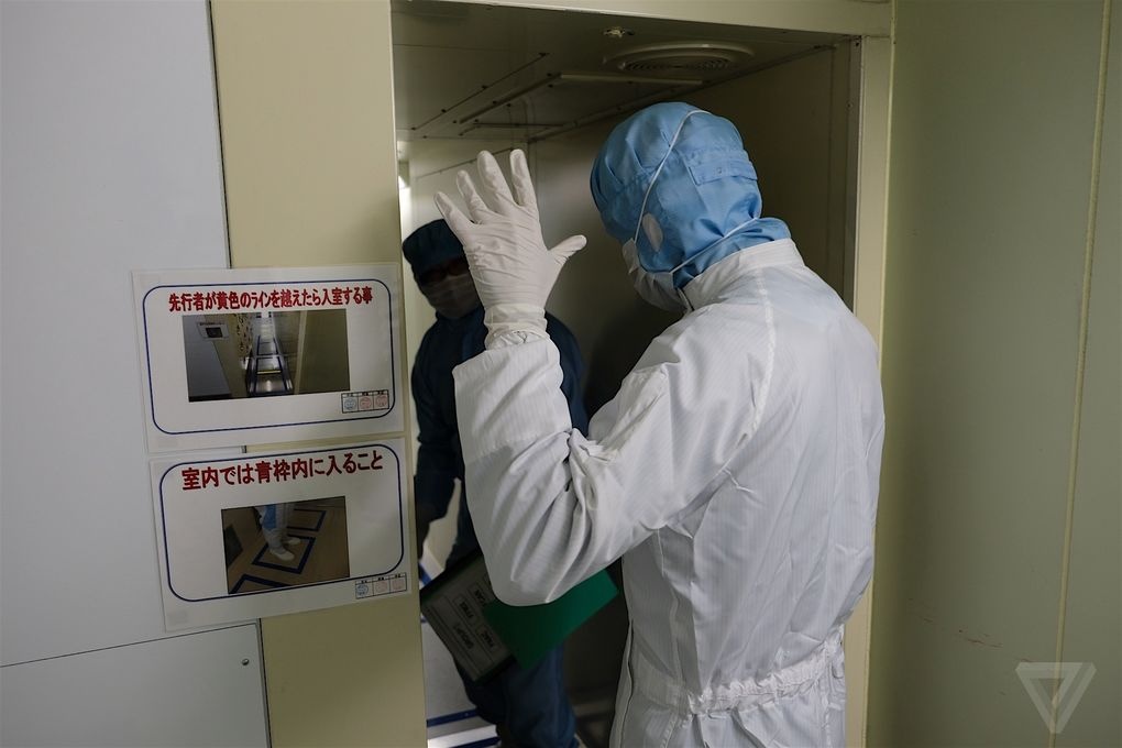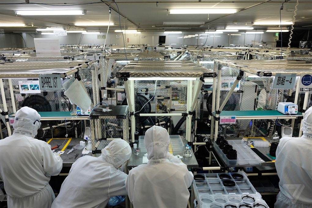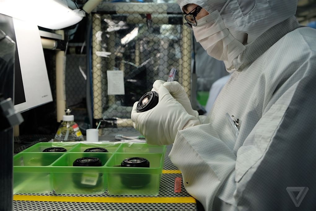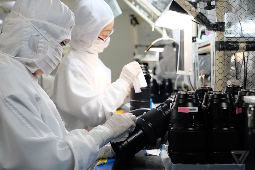 Để tránh bụi, bất cứ ai đi vào khu vực lắp ráp ống kính đều phải mặc đồ bảo hộ, thậm chí người vào tham quan, chụp ảnh cũng không được mang dây đeo. |