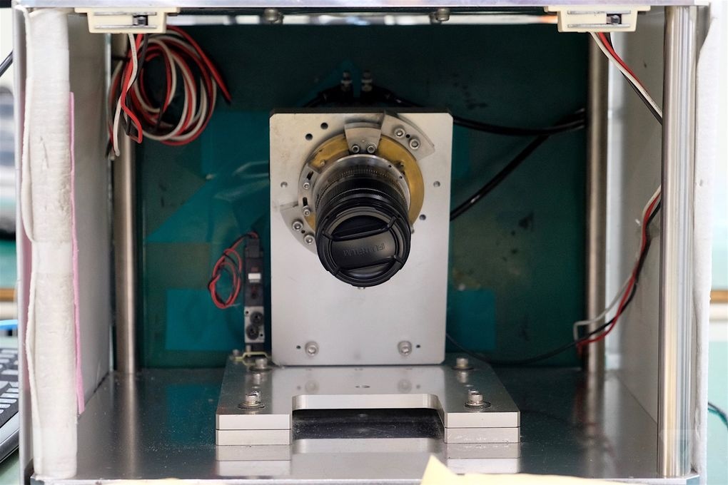 Máy khắc laser sẽ in dòng chữ "Made In Japan" và số seri lên ống kính trong một vài giây. |