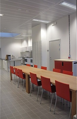 | Cứ 10 - 20 phòng giam sẽ có một nhà bếp và phòng khách chung. Tại đây, phạm nhân sẽ cùng chuẩn bị bữa tối và thư giãn sau một ngày lao động. Người ta không tìm thấy bóng dáng của những chấn song sắt tại nhà tù Halden Fengsel. Quá trình xây dựng trại giam kéo dài 10 năm, với tổng chi phí là 250 triệu USD. |