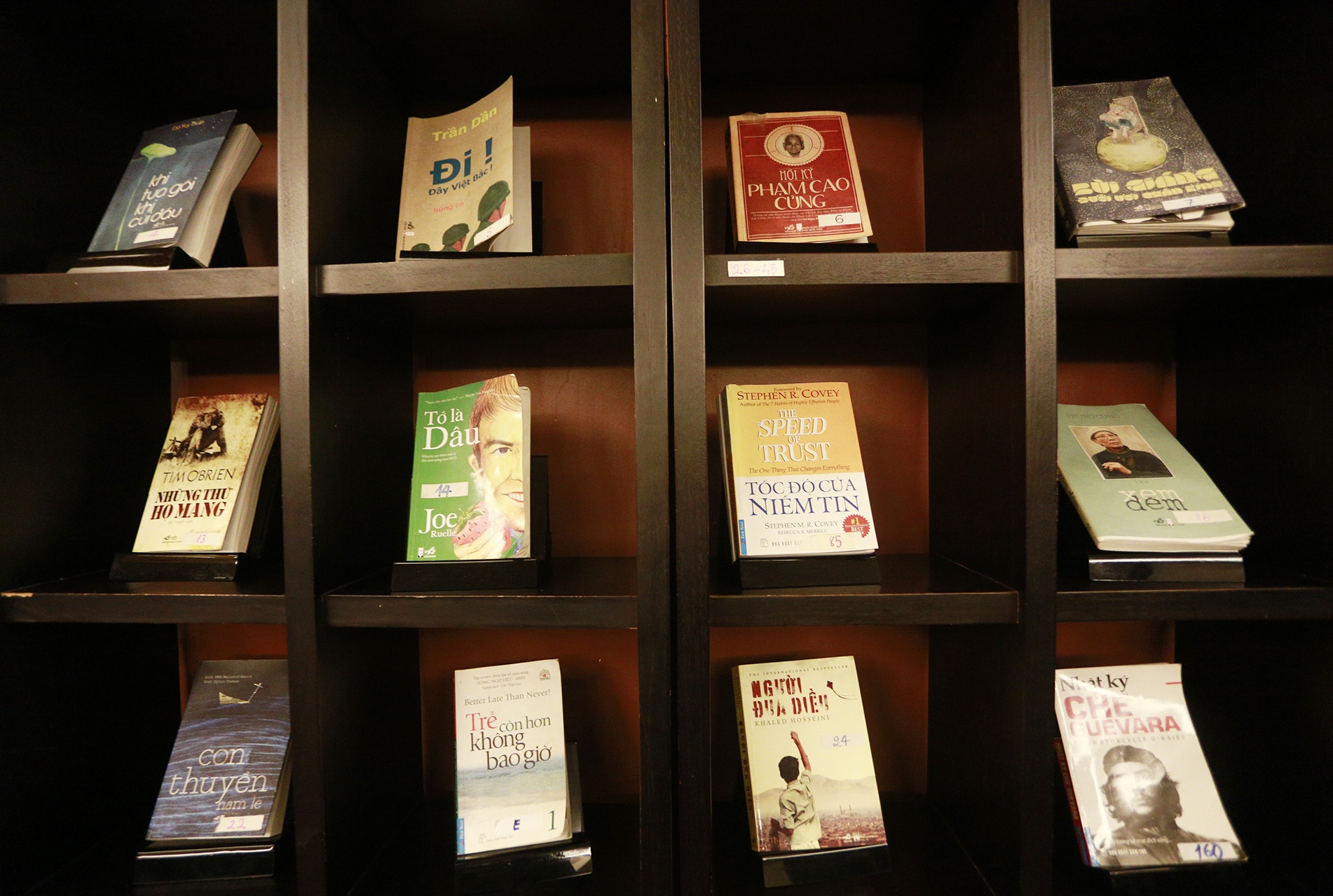 Những đầu sách tại cà phê Trung Nguyên trên phố Hai Bà Trưng.
