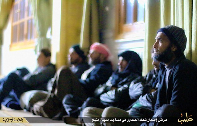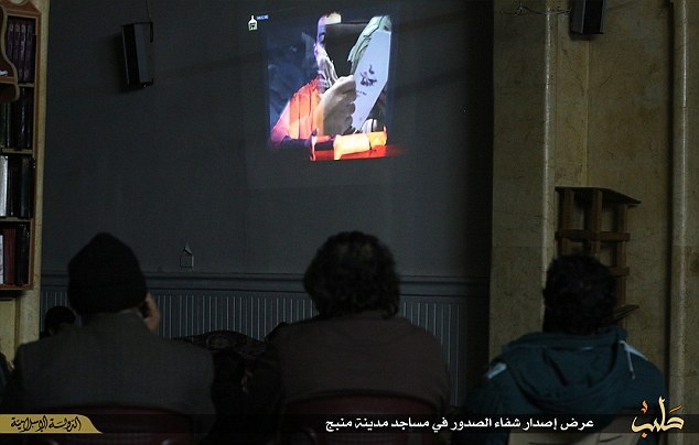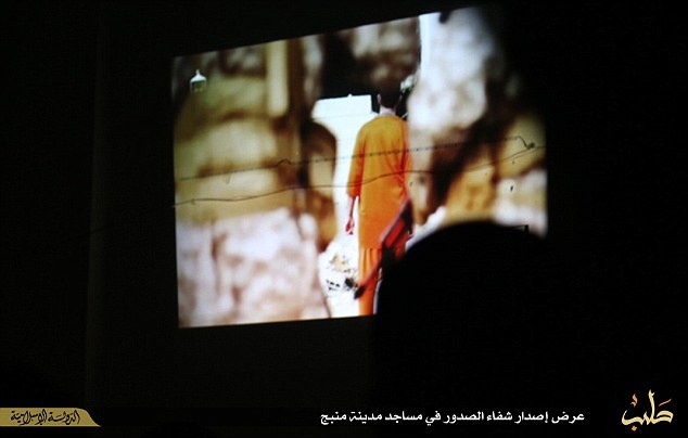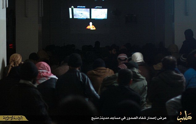 Nhiều người đàn ông ngồi vắt chéo chân trên sàn của rạp, chăm chú xem cảnh phiến quân IS chặt đầu, bắn và thiêu sống các con tin phương Tây. Họ không hề sốc trước những hành vi man rợ của tên đao phủ IS trong video, theo Daily Mail. |
