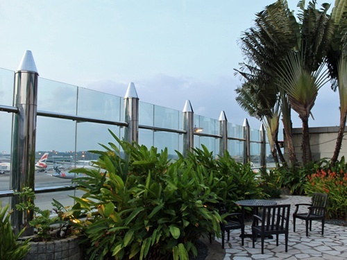 Từ bể bơi, hành khách có thể nhìn thấy được các máy bay đang hạ và cất cánh.