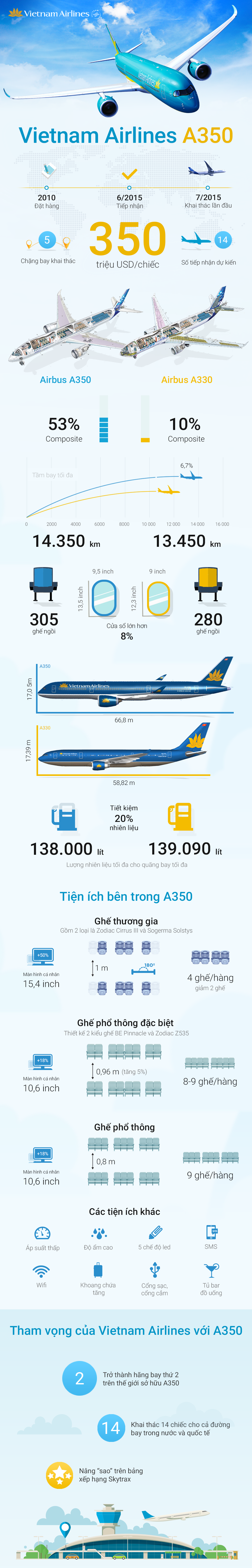 Là hãng bay thứ hai trên thế giới sở hữu chiếc A350, Vietnam Airlines dự kiến mang lại những trải nghiệm 4 sao cho khách hàng từ ghế ngồi tới các dịch vụ giải trí và tiện ích.