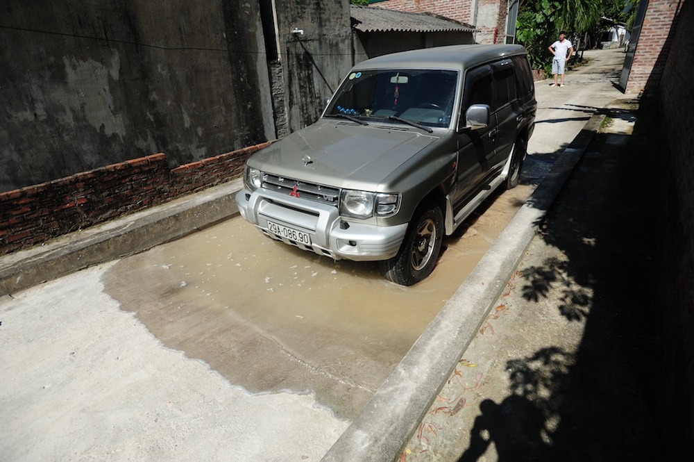 Xe ra vào một trang trại lợn ở huyện Sóc Sơn (Hà Nội) phải qua bể khử trùng nhằm tránh dịch bệnh cho cả đàn.