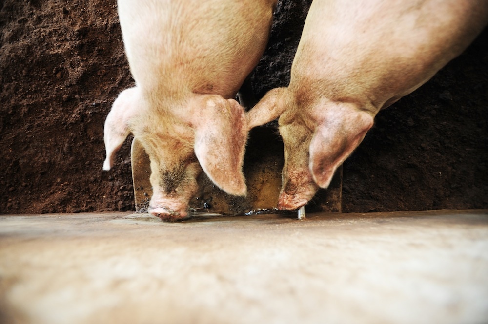 | Lợn uống nước trực tiếp từ vòi để đảm bảo giữ sạch nguồn nước. Vòi được thiết kế đặc biệt để khi lợn đưa mõm vào hút, lúc đó nước mới chảy ra. |