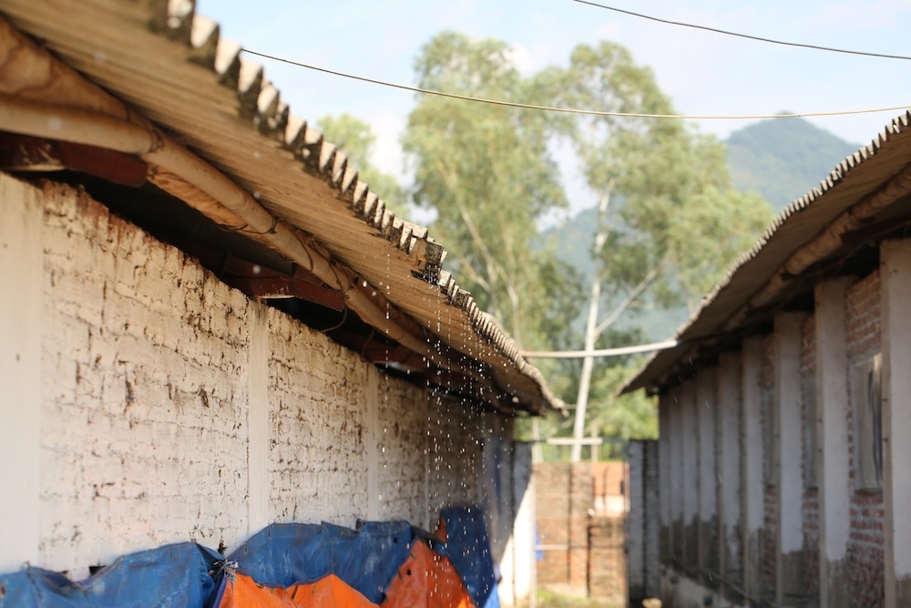 Ngày nóng, hệ thống làm mát bằng nước sẽ phun nước lên mái nhà nuôi lợn.