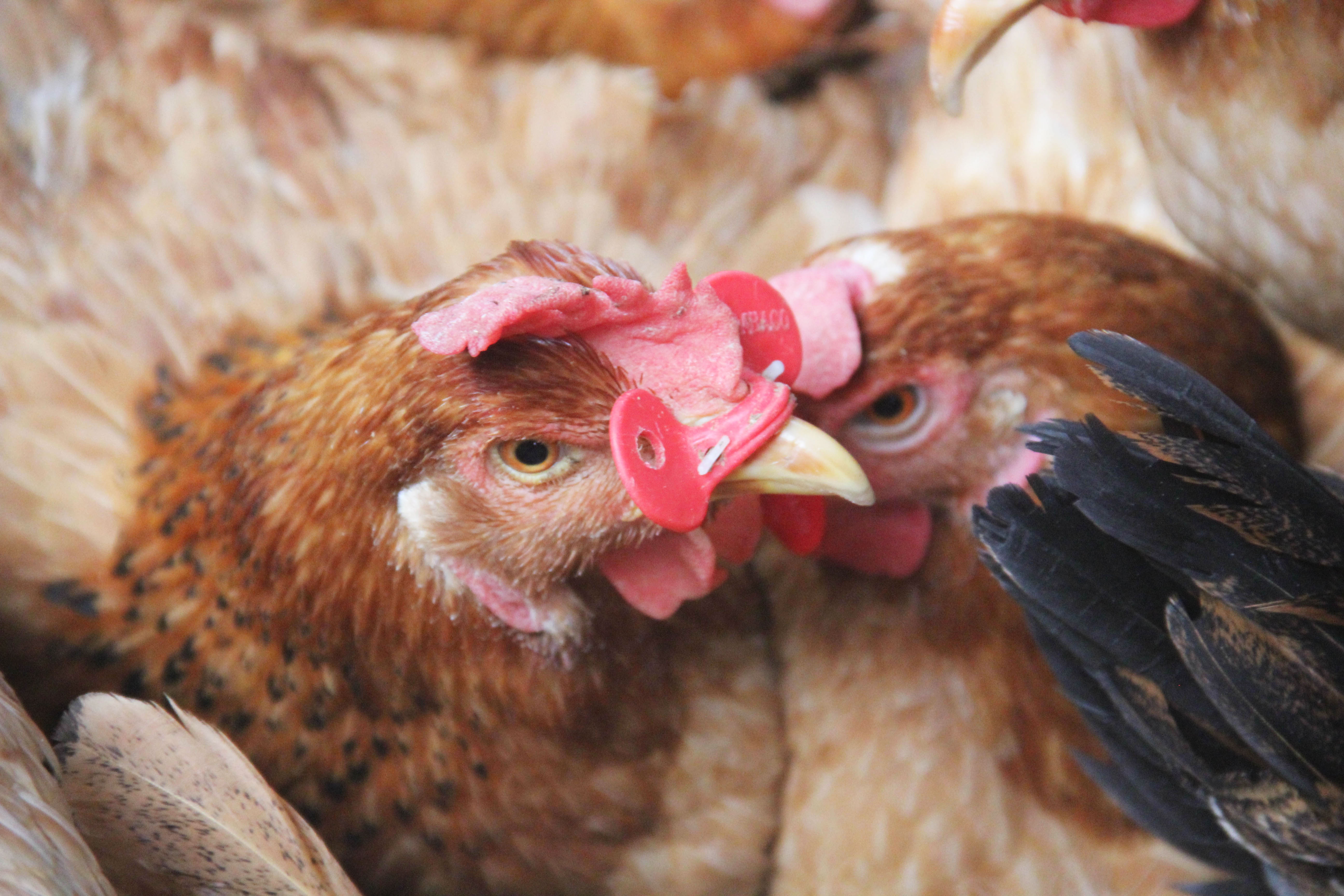 | Việc đeo kính cho gà được nhân viên trang trại giải thích: để tránh chúng mổ nhau hoặc làm vỡ trứng. |