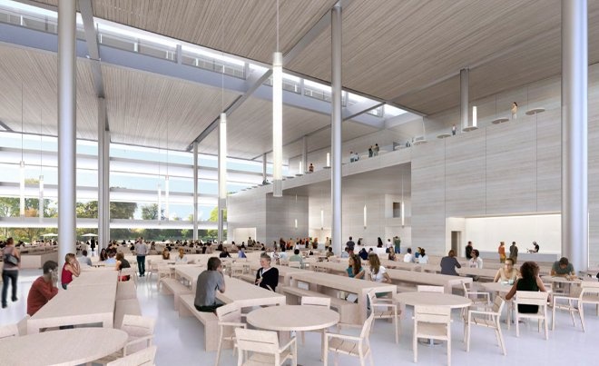 | Tòa nhà chính có diện tích khoảng 260.000 mét vuông, là nơi làm việc của 13.000 nhân viên Apple. |