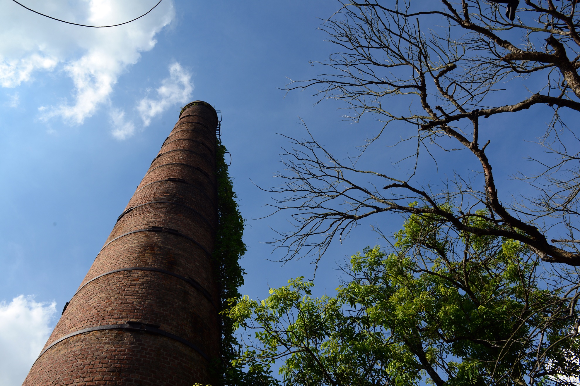 | Ống khói của lò nung cũ đã ngừng hoạt động nhiều năm. |