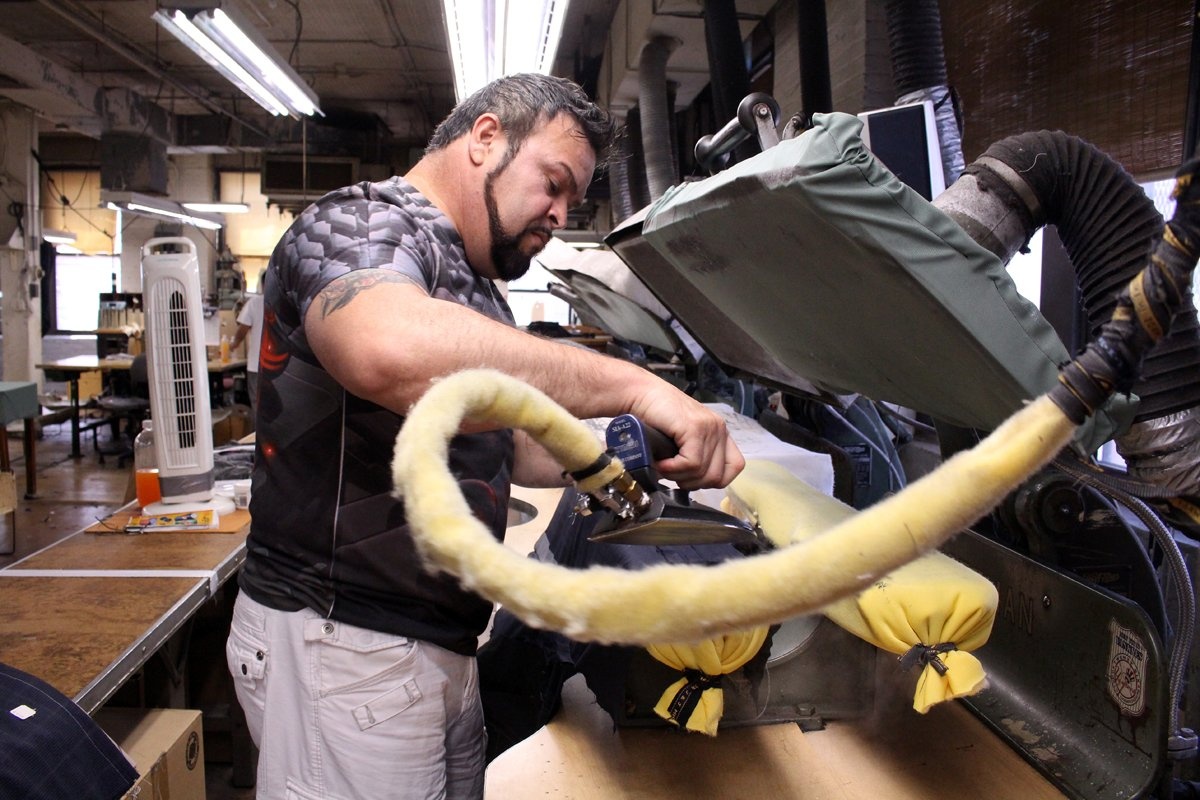Tod Greenfield (phải) là con trai của ông Martin, cũng là người đồng sở hữu công ty. Greenfield ước tính, mỗi người trong số 120 nhân công tại xưởng thường đảm nhận cùng lúc rất nhiều công đoạn.