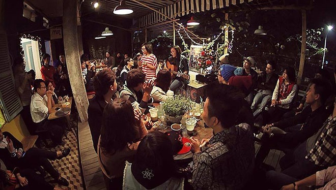T-Zam cà phê rất độc đáo và chẳng mấy khi vắng khách vào buổi tối.