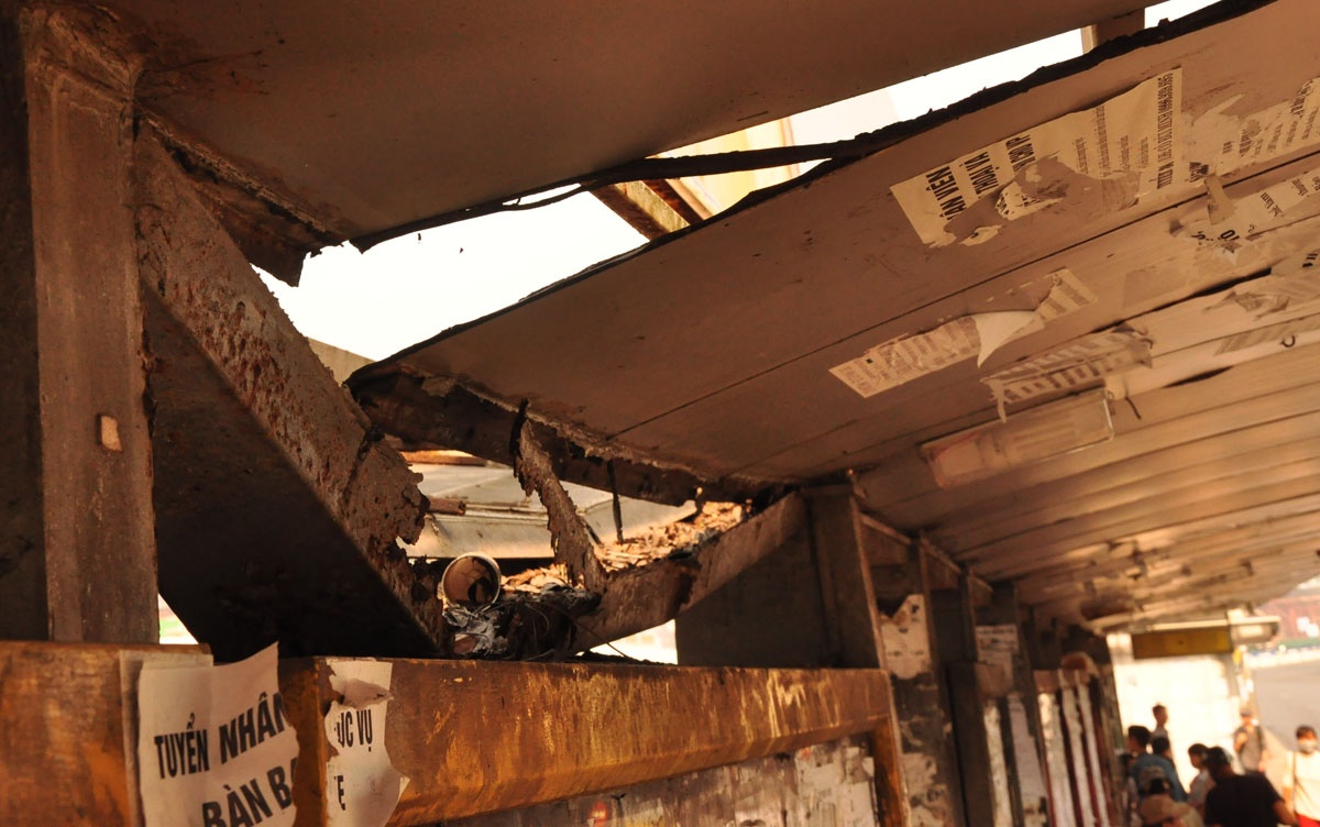 Có đoạn mái đã sập xuống khiến hành khách khốn khổ mỗi khi trời mưa. "Đứng trong mái nhà chờ mà cứ như đứng giữa trời vậy. Hôm nào trời nắng còn đỡ, chứ trời mưa mái thì dột, lên được đến xe thì ướt như chuột lột”, Nguyễn Độ Điện, sinh viên năm 2 ĐH Kinh tế Kỹ thuật công nghiệp bức xúc nói.