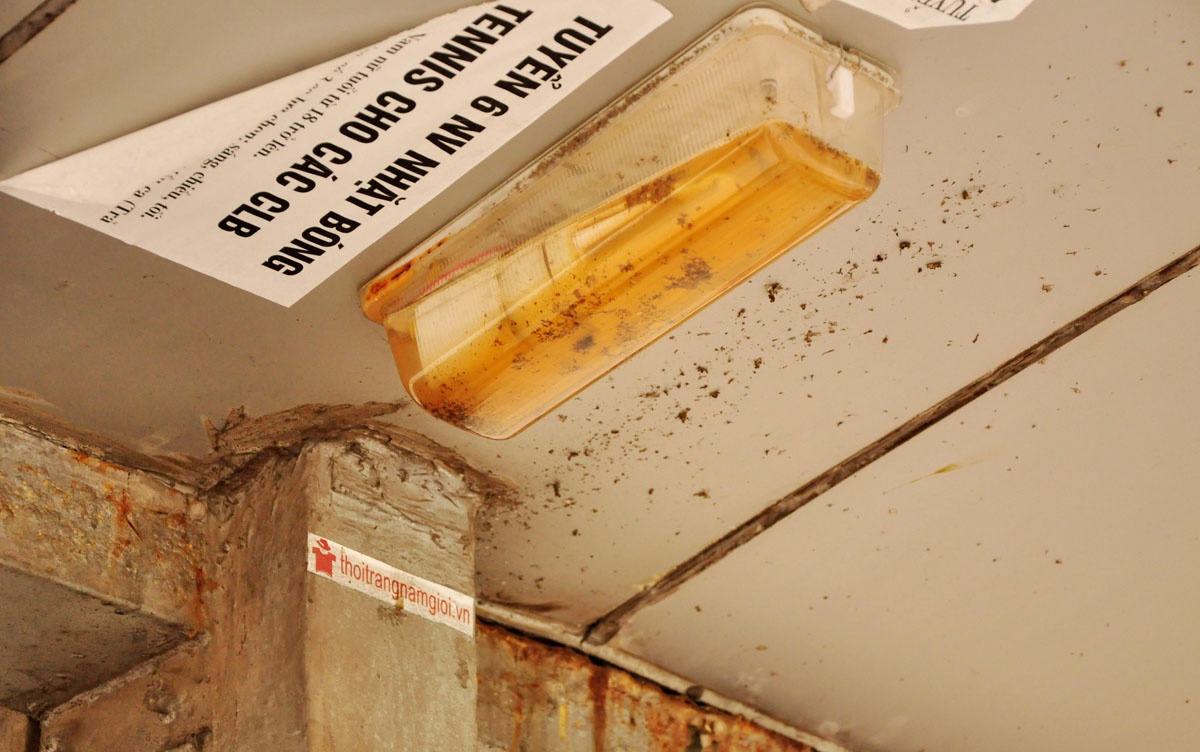 | Hầu hết hệ bóng đèn chiếu sáng đã bị hỏng, hoặc đọng đầy nước mưa. |