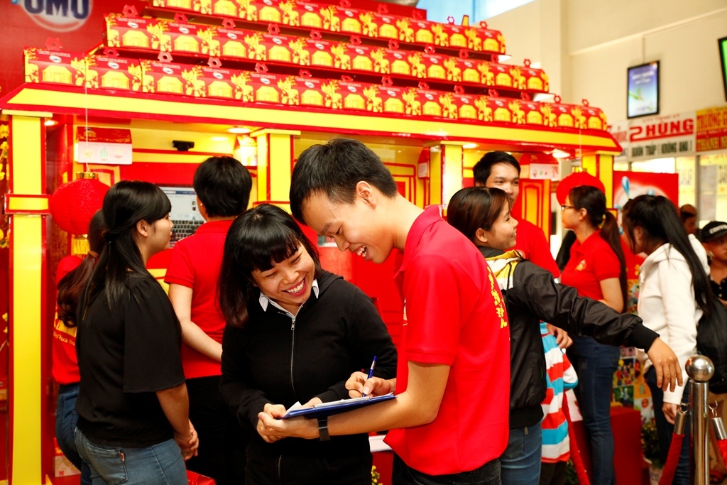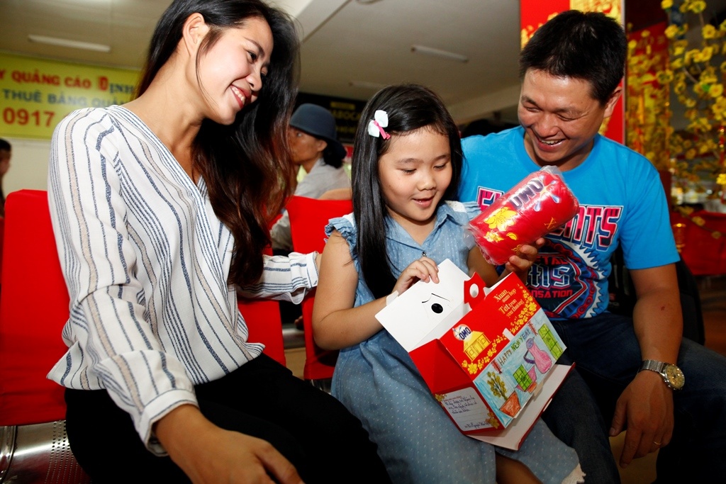 | Bên cạnh đó, gia đình hành khách nhận được hộp quà sum họp từ OMO - đơn vị thực hiện chiến dịch trang trí bến xe miền Đông dịp Tết Bính Thân. |