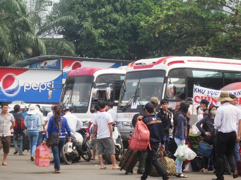 Mọi năm vào thời điểm cận Tết, rất đông hành khách đến bến xe tạo nên cảnh chen lấn, ngồi tràn ra vỉa hè đường Đinh Bộ Lĩnh (phường 26, quận Bình Thạnh) để chờ tới giờ lên xe.
